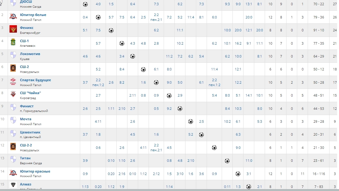 "Спартак будущее" г. Н. Тагил - ДЮСШ г. Н. Салда - 3:7;