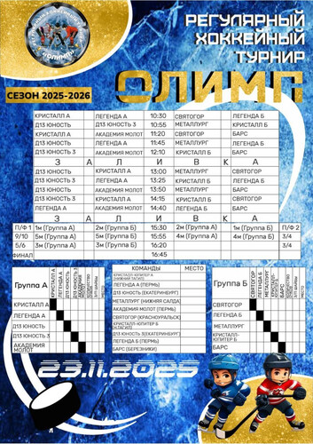 23 ноября 2025 в городе Качканар состоялся Турнир по хоккею с шайбой "Олимп' среди команд 2018г.р.