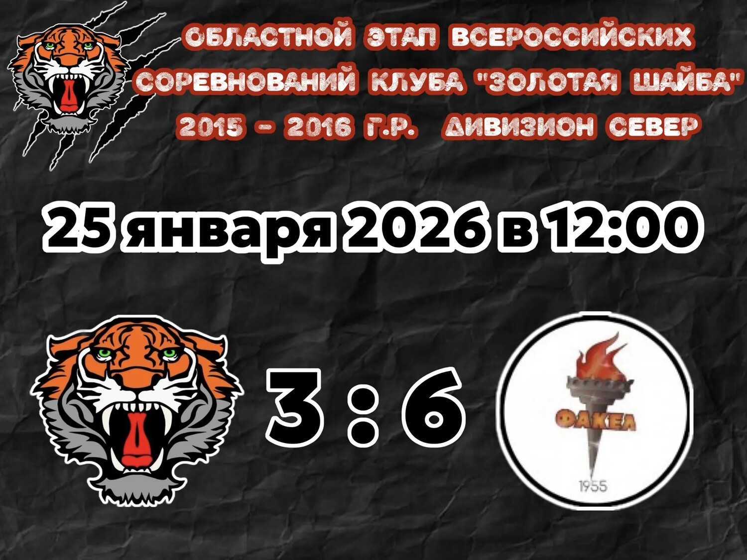 25 января 2026 года состоялся календарный матч Областного этапа Всероссийских соревнований по хоккею с шайбой клуба "Золотая шайба". | |