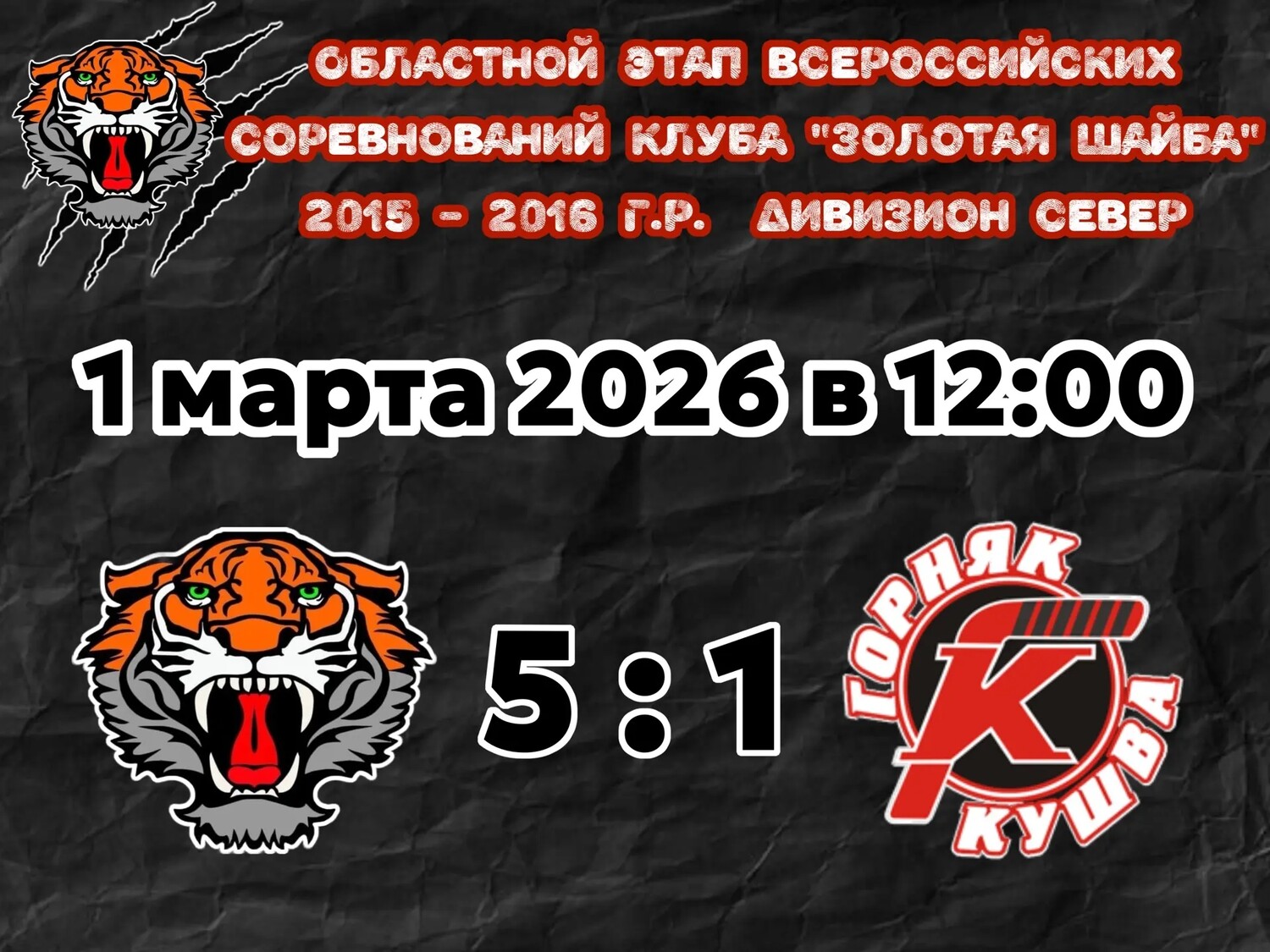 1 марта 2026 года состоялся календарный  домашний матч Областного этапа Всероссийских соревнований клуба «Золотая шайба». Команда "Металлург" принимала на своём льду команду "Горняк" город Кушва. С первых минут нашей команде удаётся открыть счёт.