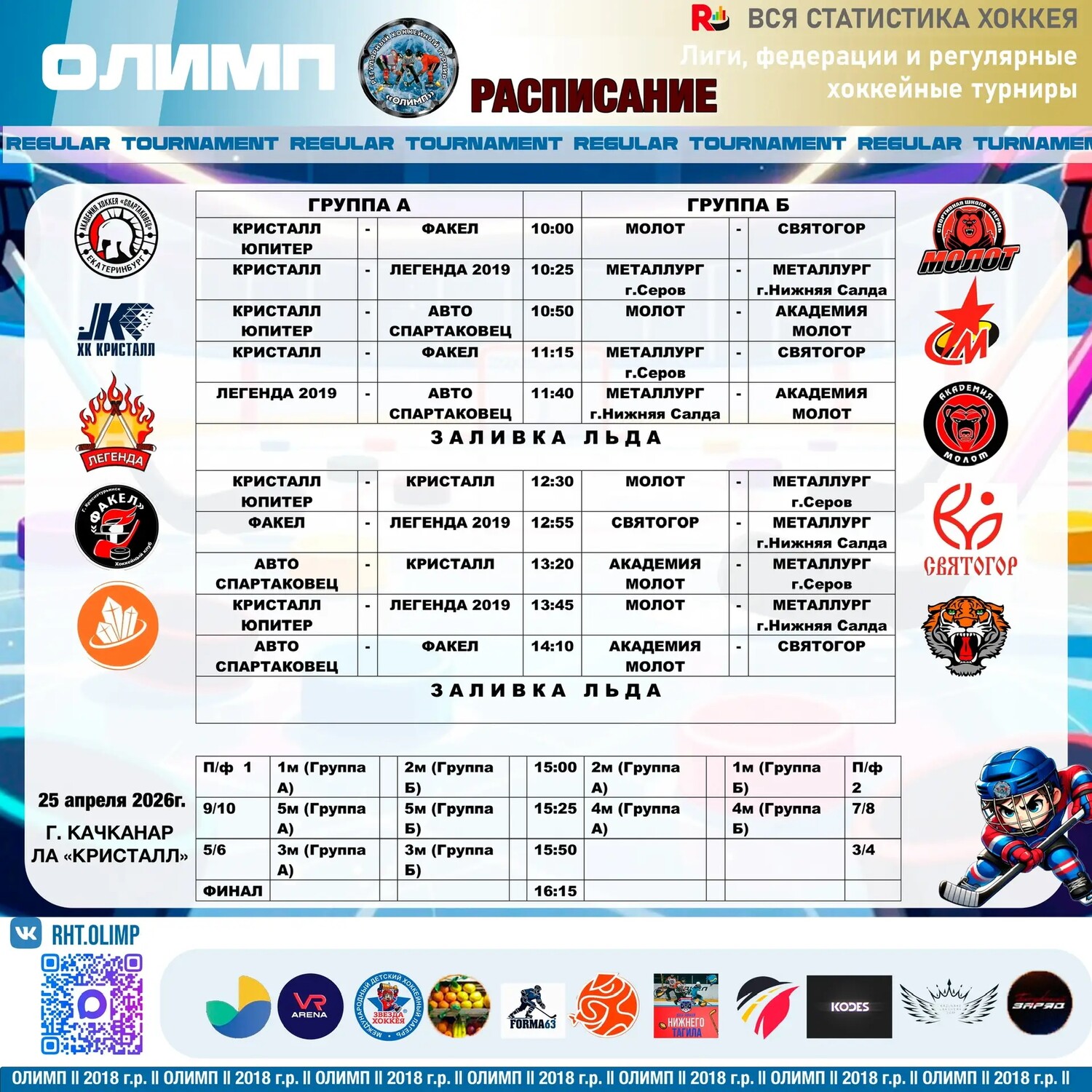 25 апреля 2026 года в городе Качканар состоялся Турнир по хоккею "Олимп", в турнире приняла участие хоккейная команда 2018-2019г.р. тренер- преподаватель Пензин Алексей Александрович.